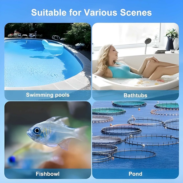 Puikiai tinka baseinams, sūkurinėms vonioms, akvariumams, žuvų tvenkiniams ir kūdikių vonelėms.