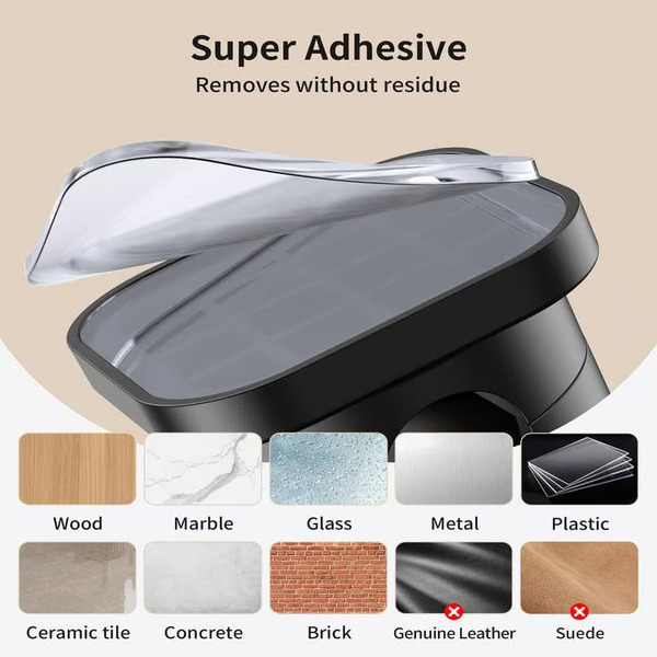 Tvirtai prisitvirtina prie lygių paviršių, tokių kaip medis, plytelės, metalas ar lygios sienos.