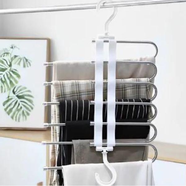 Suderinkite savo garderobą ir mėgaukitės tobula tvarka. Pasirūpinkite, kad jūsų drabužiai visada būtų tvarkingi ir pasiekiami, naudodami mūsų universalią 5 dalių kelnių pakabą!
