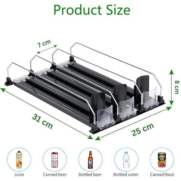 Sutaupykite vertingą šaldytuvo vietą tobulai išdėliodami butelius ir skardines lengvam prieinamumui.