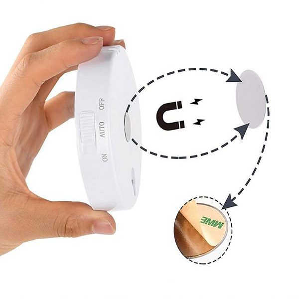 Montuokite ją bet kur! Dėl įmontuoto magneto ją galite pritvirtinti prie bet kokio geležinio paviršiaus arba naudodami dvipusę lipnią juostą priklijuokite ją prie bet kokio lygaus paviršiaus.